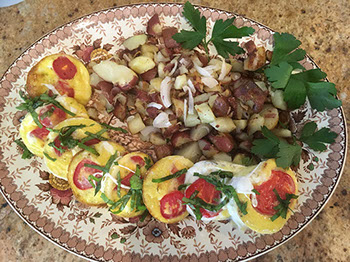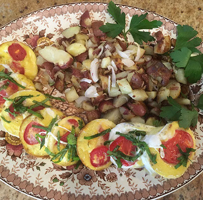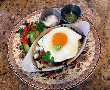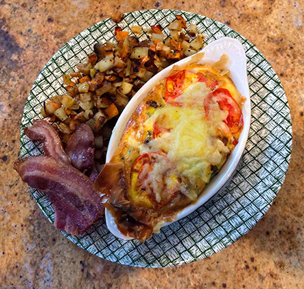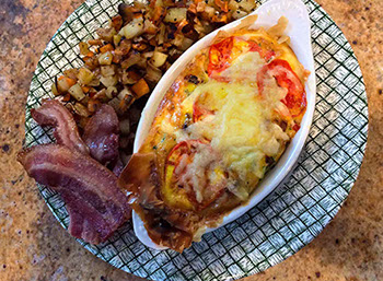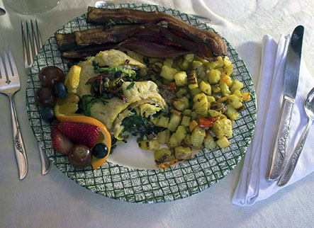 consists of a fruit and yogurt course followed up by a savory or sweet main course. Pair this with fruit juice and settle back and enjoy your tea or coffee. Often our guests inspire us!